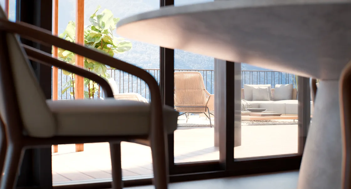 Da ogni piano di Lumina lo sguardo si apre sul lago, con affacci spettacolari verso le acque tranquille del Lario e il paesaggio verde del Triangolo Lariano.